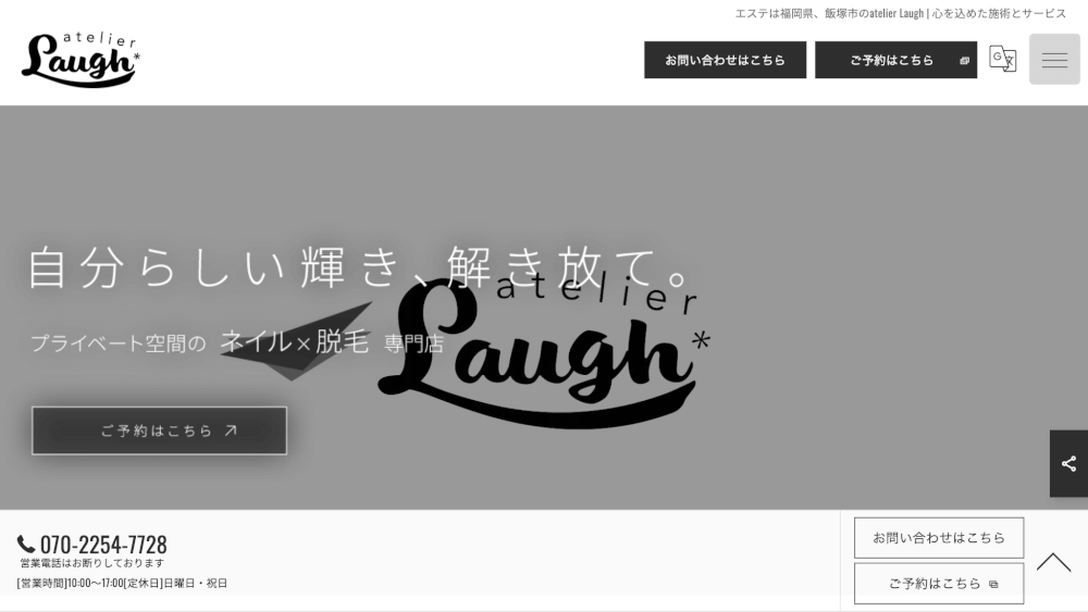 ネイル&脱毛サロン atelier Laugh(アトリエ ラフ)では、サロンでの施術だけでなく、お客様の継続的な美容向上を支援するための情報発信にも力を入れています。ブログでは店内の様子や施術のご紹介を中心に、実際の施術事例を通じて専門的な内容をわかりやすく丁寧に説明し、お客様の美容に関する理解を深めています。また、お客様のお悩みやご希望に合わせた具体的な施術事例を豊富にご紹介することで、施術前の不安を解消し、安心して来店いただけるよう配慮しています。