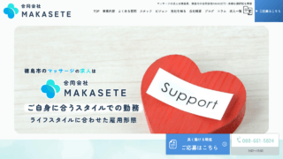 合同会社MAKASETEでは、複雑な事務作業や集客のための営業活動をすべて本部が代行することで、施術者が利用者様へのケアに全精力を注げる環境を整えています。徳島市を中心に鳴門市、小松島市、板野郡、名西郡の各ご家庭を訪問し、高齢の方や障がいのある方に対して訪問マッサージサービスを提供しており、あん摩マッサージ指圧師または鍼灸師の国家資格を保有する方を募集しています。